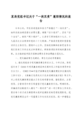 2022年某局党组书记关于“一岗双责”履职情况的报告.docx