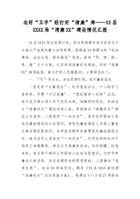 念好“五字”经打好“清廉”牌——XX县XXXX局“清廉XX”建设情况汇报.docx