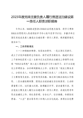 2023年度党政主要负责人履行推进法治建设第一责任人职责述职报告.docx