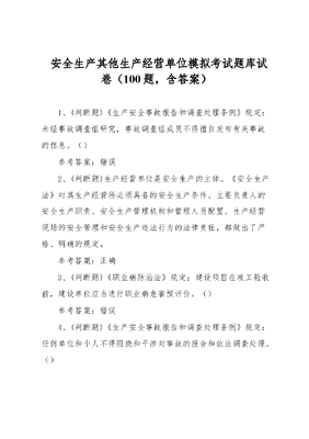 安全生产其他生产经营单位模拟考试题库试卷(100题,含答案).docx