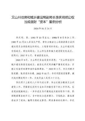 党纪学习教育∣案例剖析:文山州住房和城乡建设局副局长李庆明把公权当成敛财“资本”案例分析.docx