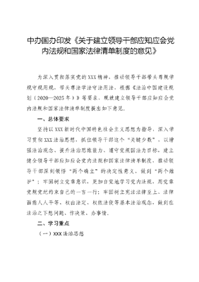 党纪学习教育∣上级精神:中办国办印发《关于建立领导干部应知应会党内法规和国家法律清单制度的意见》.docx