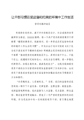 党纪学习教育∣评论文章:让干部习惯在受监督和约束的环境中工作生活.docx