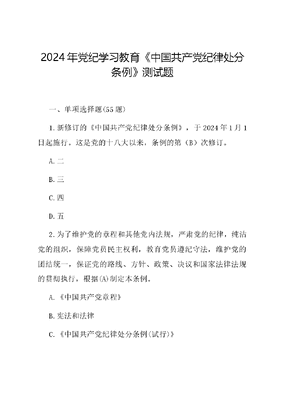 2024年党纪学习教育《中国共产党纪律处分条例》测试题.docx