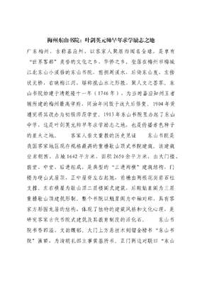 红色故事:梅州东山书院:叶剑英元帅早年求学励志之地.docx