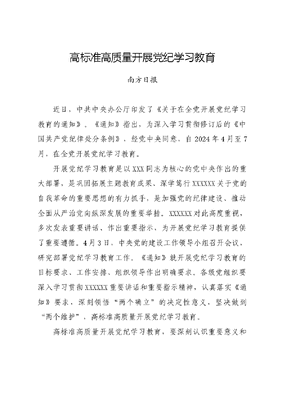 党纪学习教育∣评论文章:高标准高质量开展党纪学习教育.docx