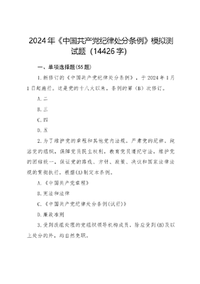 2024年《中国共产党纪律处分条例》模拟测试题.docx