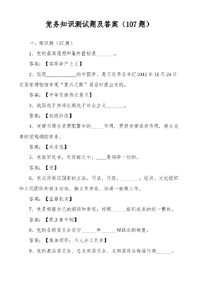 党务知识测试题及答案党务工作者应知应会题库.docx