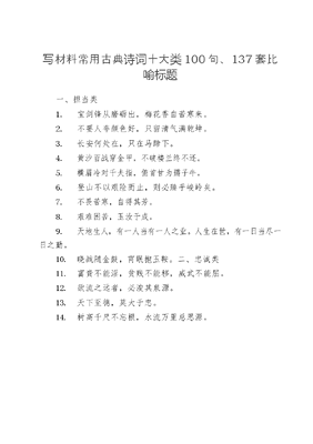 写材料常用古典诗词十大类100句、137套比喻标题.docx
