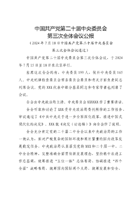 中国共产党第二十届中央委员会第三次全体会议公报(三中全会公报).doc