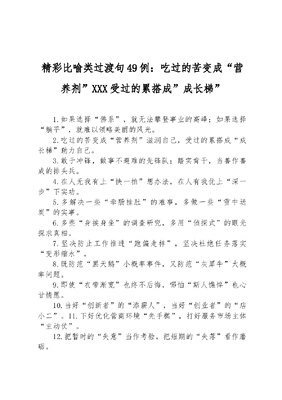 精彩比喻类过渡句49例:吃过的苦变成“营养剂” 受过的累搭成”成长梯”.docx