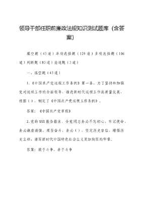 领导干部任前廉政法规知识测试题库(37000字).docx