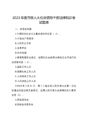 2023年度市非人大任命领导干部法律知识考试题库.docx