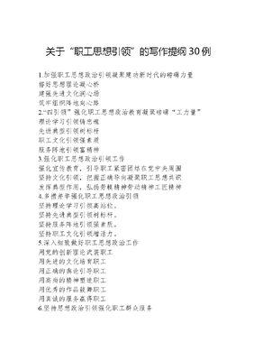 关于“职工思想引领”的写作提纲30例.docx
