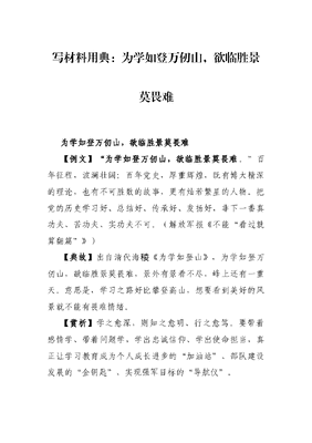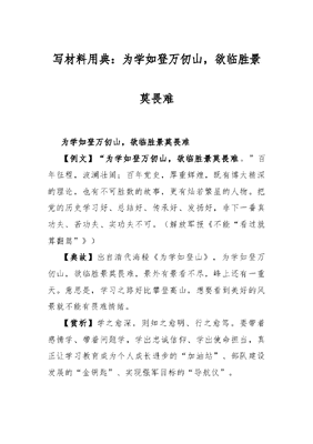 写材料用典:为学如登万仞山,欲临胜景莫畏难.docx