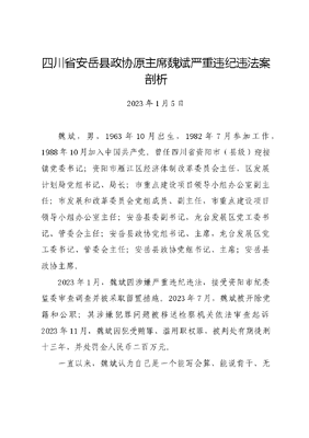 党纪学习教育∣案例剖析:四川省安岳县政协原主席魏斌严重违纪违法案剖析.docx