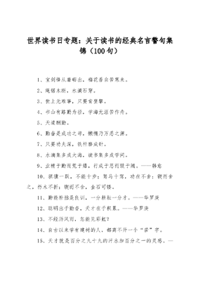 世界读书日专题:关于读书的经典名言警句集锦(100句).docx