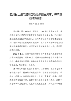 党纪学习教育∣案例剖析:四川省达州市通川区政协原副主席唐小锋严重违法案剖析.docx