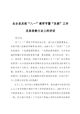 在全县庆祝八一建军节暨双拥工作总结表彰会上的讲话.docx