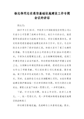 杨志伟同志在通信基础设施建设工作专题会议的讲话.docx