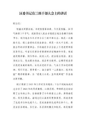 区委书记在三级干部大会上的讲话.docx
