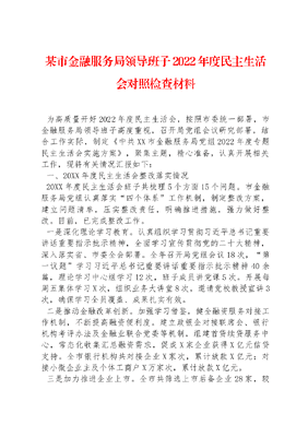 某市金融服务局领导班子2022年度民主生活会对照检查材料.docx