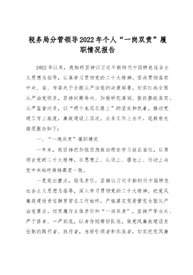 税务局分管领导2022年个人“一岗双责”履职情况报告.docx