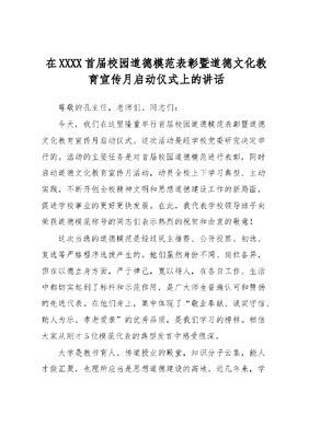 在XXXX首届校园道德模范表彰暨道德文化教育宣传月启动仪式上的讲话.docx