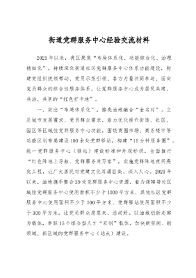 街道党群服务中心经验交流材料.docx