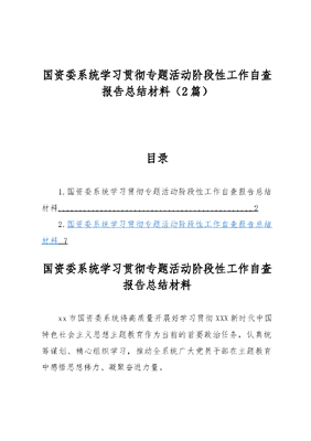 (2篇)国资委系统学习贯彻专题活动阶段性工作自查报告总结材料.docx