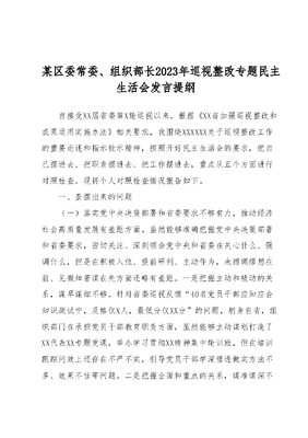 某区委常委、组织部长2023年巡视整改专题民主生活会发言提纲.docx