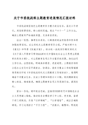 关于市委统战部主题教育进展情况汇报材料.docx