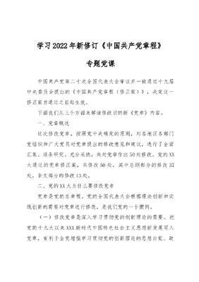 学习2022年新修订《中国共产党章程》专题党课.docx