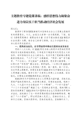 主题教育专题党课讲稿:感悟思想伟力,凝聚奋进力量,以实干担当推动,经济社会发展.docx