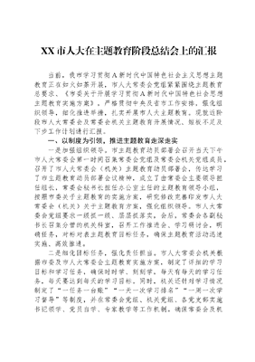 XX市人大在主题教育阶段总结会上的汇报.docx