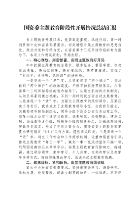 国资委主题教育阶段性开展情况总结汇报.docx