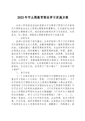 2023年市主题教育理论学习实施方案.docx