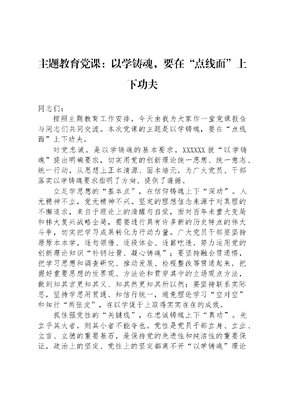 主题教育党课:以学铸魂,要在“点线面”上下功夫.docx
