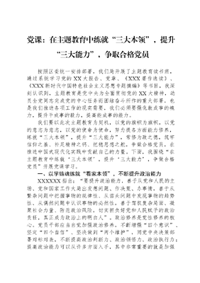 党课:在主题教育中练就“三大本领”,提升“三大能力”,争取合格党员.docx