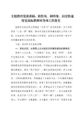 主题教育党课讲稿:转作风、树形象、以更快速度更高标准抓好各项工作落实.docx
