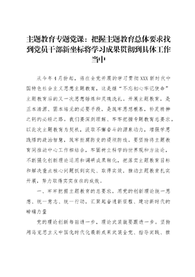 主题教育专题党课:把握主题教育总体要求找到党员干部新坐标将学习成果贯彻到具体工作当中.docx