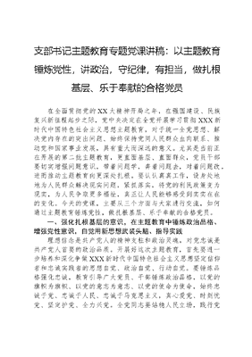 支部书记主题教育专题党课讲稿:以主题教育锤炼党性,讲政治,守纪律,有担当,做扎根基层、乐于奉献的合格党员.docx