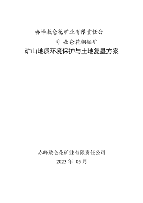 赤峰敖仑花矿业有限责任公司敖仑花铜钼矿矿山地质环境保护与土地复垦方案.docx