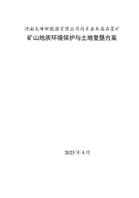 河南文峰新能源有限公司内乡县朱庙石墨矿矿山地质环境保护与土地复垦方案.docx