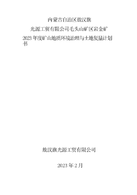 敖汉旗光源工贸有限公司毛头山矿区岩金矿2023年地质环境保护与土地复垦计划.docx