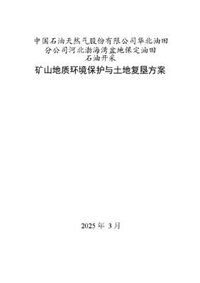 河北渤海湾盆地保定油田石油开采矿山地质环境保护与土地复垦方案.docx