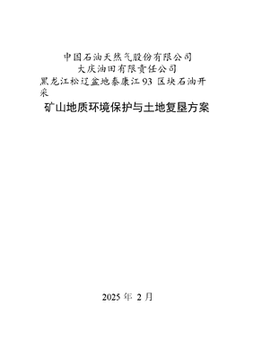 大庆油田有限责任公司黑龙江松辽盆地泰康江93区块石油开采矿山地质环境保护与土地复垦方案.docx