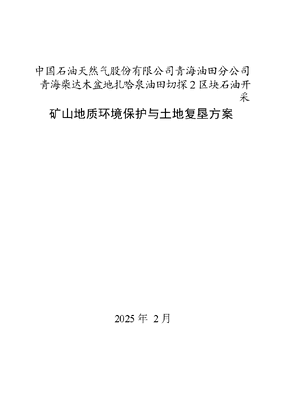 青海柴达木盆地扎哈泉油田切探2区块石油开采矿山地质环境保护与土地复垦方案.docx