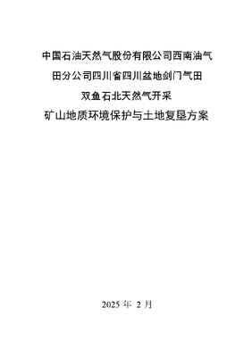 四川省四川盆地剑门气田双鱼石北天然气开采矿山地质环境保护与土地复垦方案.docx