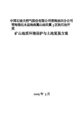 青海柴达木盆地南翼山油田翼3区块石油开采矿山地质环境保护与土地复垦方案.docx